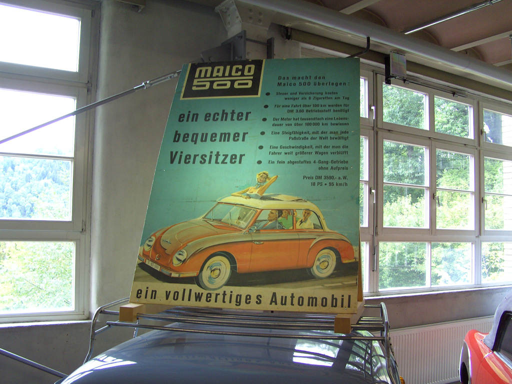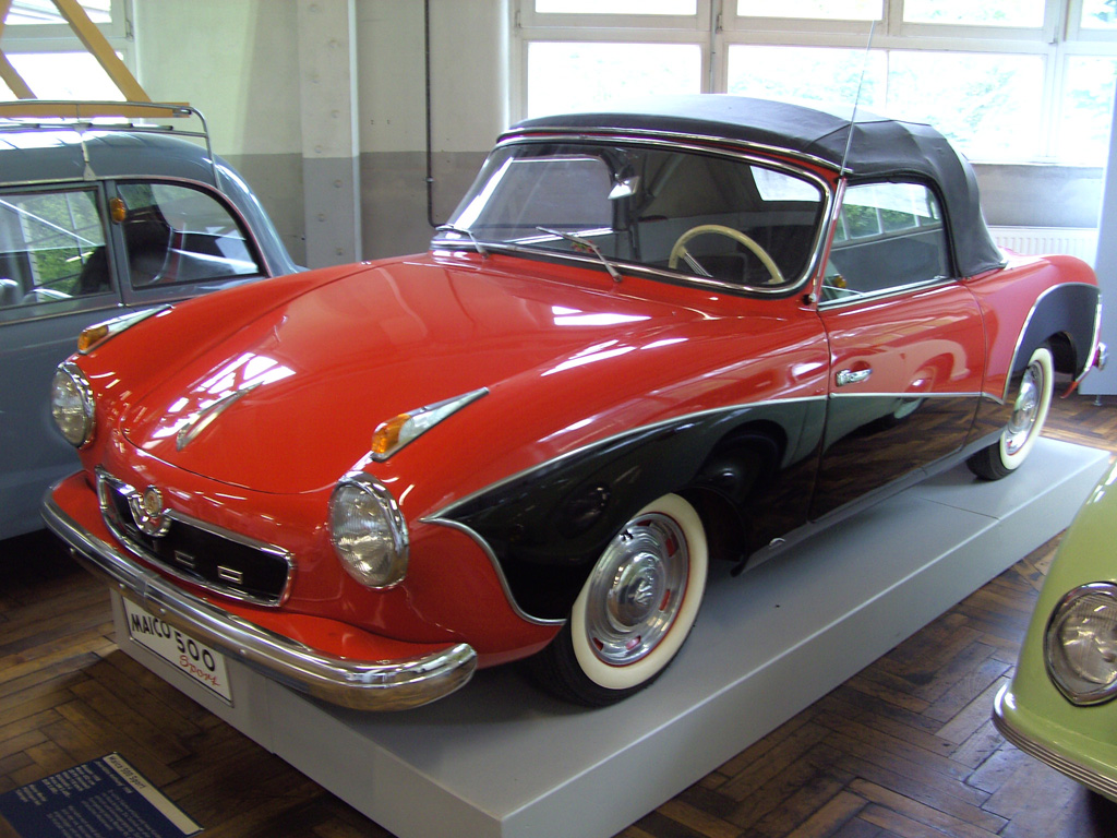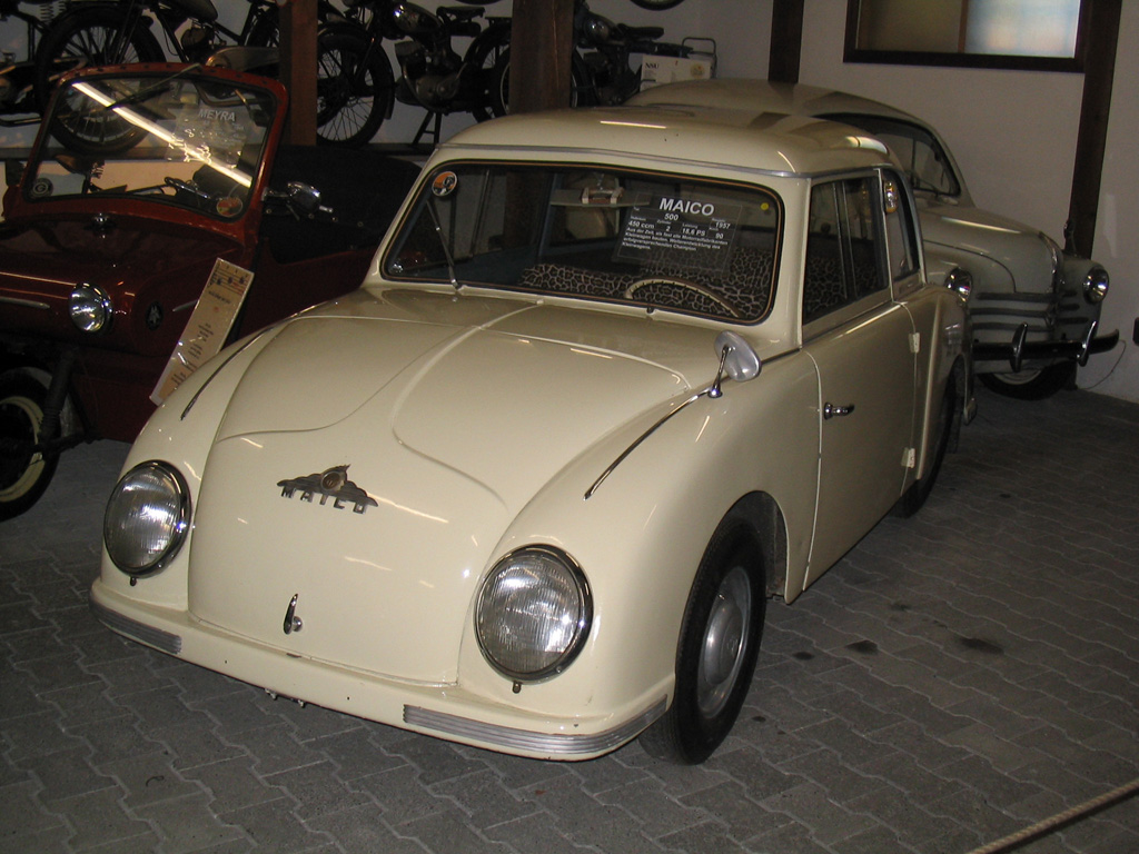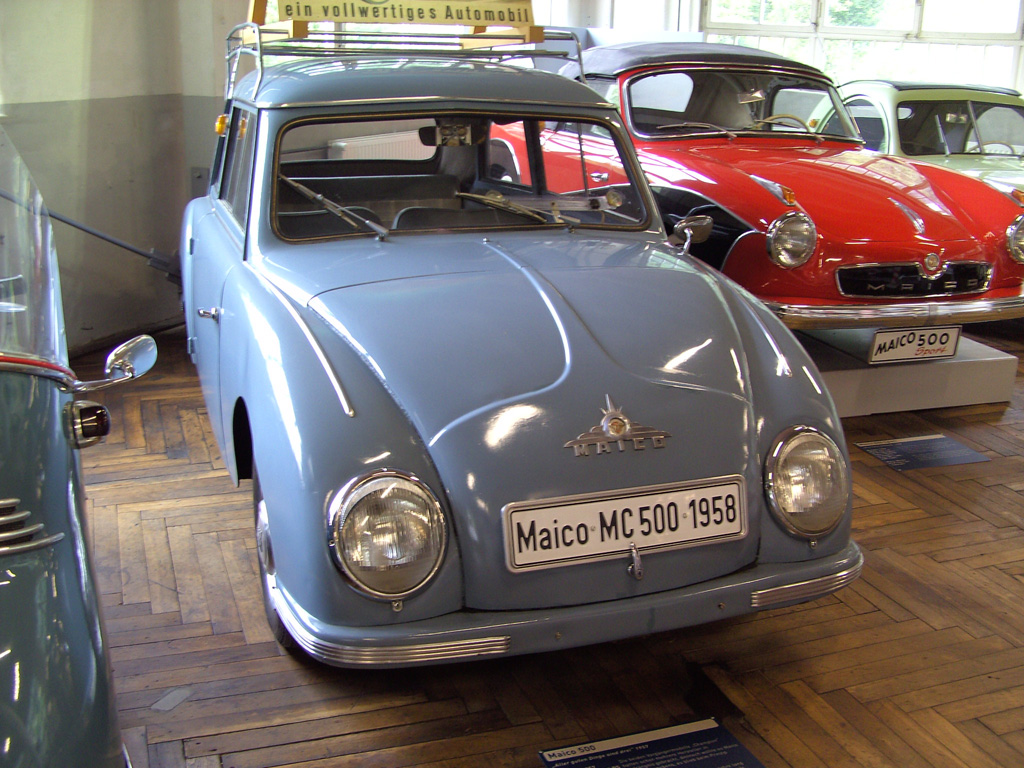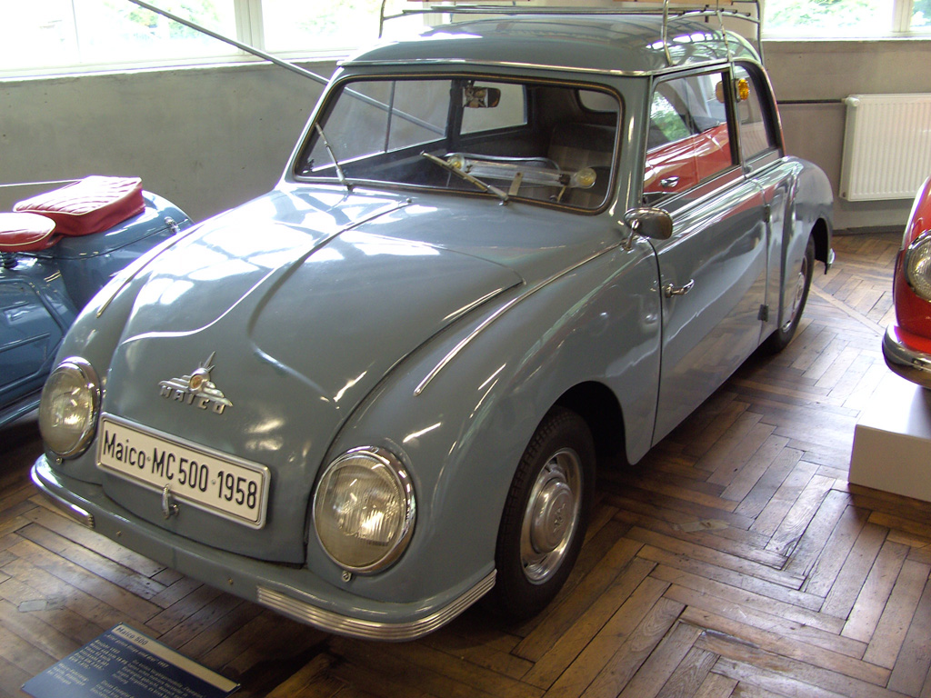 De Maico 500 was oorspronkelijk een cabriolet en zelfs ronder dan een Gutbrod waar hij best op leek. Met amper 15 pk was de motor van de sedan aanvankelijk wat te zwak, en later - als hij sterker was geworden - te luidruchtig. white wall banden en een totale lengte van 342 cm zorgden voor enige troost. de auto is tussen 1956 en 1958 6300 keer verkocht.