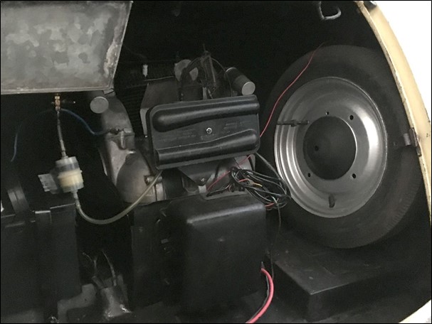 De mechanica die het heeft is een Engelse Villiers-motor die op de achterkant is gemonteerd. De motor was een 2-takt motor die de bijzonderheid had dat je om de achteruitversnelling te gebruiken de draairichting moest veranderen. Vergelijkbaar met de Sachs LDR 200 motor gebruikt in de Bambi, Dinarg D-200 en Messerschmitt KR 200. Als het hetzelfde zou werken, zou de Villiers-motor dezelfde voorwaartse en achterwaartse snelheden hebben.