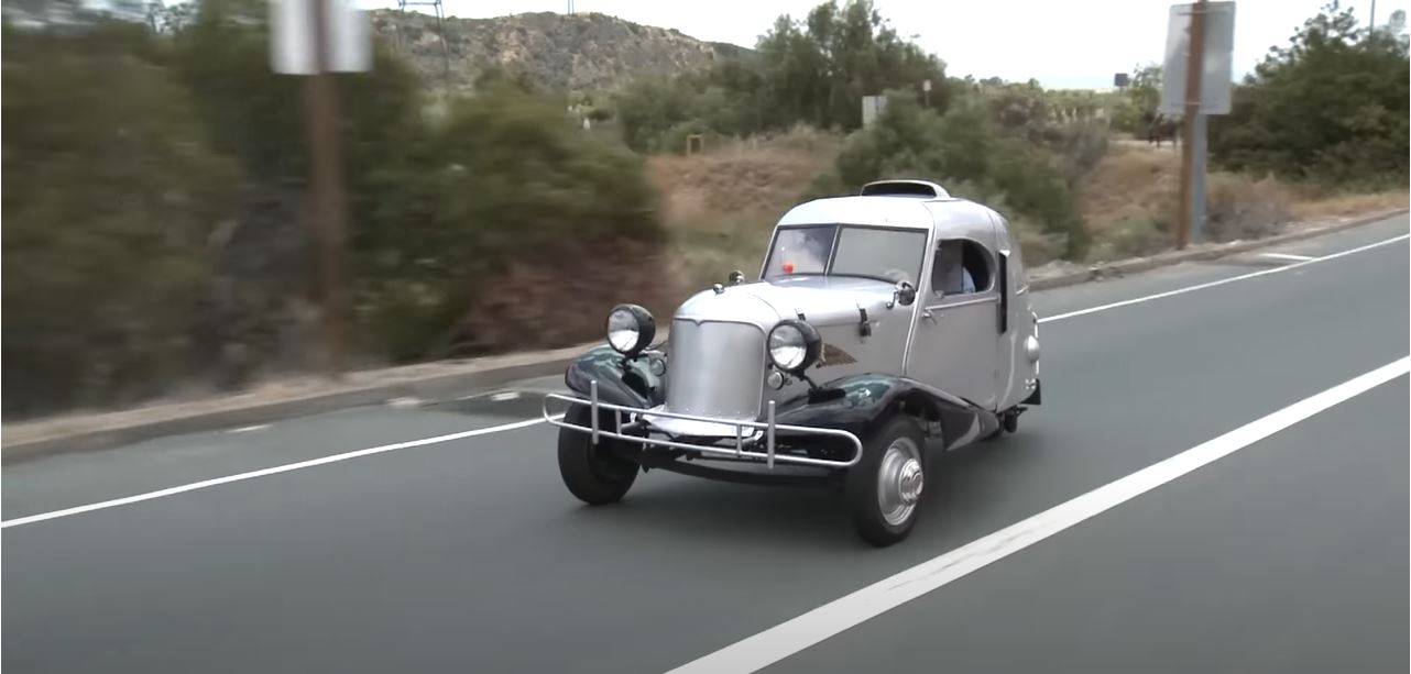 Jay geeft ons een toertje in de Shotwell, ontworpen door 17 jaar oude Bob Shotwell in 1931 die er een road trip mee maakte van 150,000-mijl.