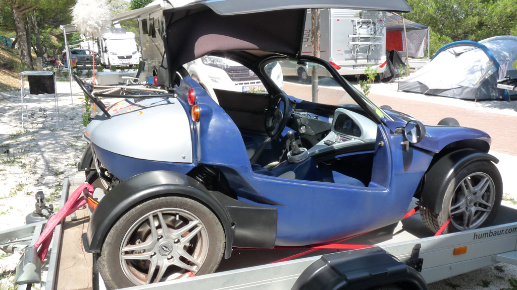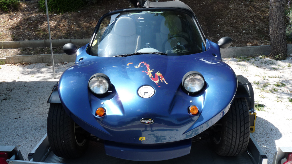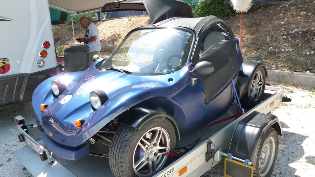 Eric Lorré, een motorgaragist uit Bergen is importeur en verdeler voor Belgie. Het gaat om een buggy-achtige vierwieler met een 500cc metende tweecilinder van Lombardini. Meer dan voldoende power voor het 394kg wegende autootje. De versnellingsbak, een vijfbak van de Peugeot 205 is vinnig en haalt een topsnelheid van 120km/uur en 6000 toeren, en dat met slechts 21 pk en een max. koppel van 32.5Nm. Toch even opletten, het voertuig is slechts 1.1 m hoog, even hoog dus als de wielen van een vrachtwagen die je voorbij steekt! In de comfortabele kuipstoeltjes, (het is een tweezitter), zit je amper 20cm boven het wegdek. Een wapperend vlagje op een lange antenne is dus aan te raden. Door zijn laag zwaartepunt en onafhankelijke wielophanging, heeft ie een perfecte wegligging. Je hebt 4 schijfremmen ter beschikking.