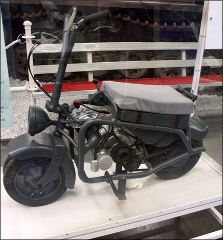 Het frame is dubbele wieg, stijf, in buisstaal. De motor is een 123 cm³ tweetakt eencilinder, die 2 PK levert bij 3600 tpm (boring 52 mm, slag 56 mm, compressieverhouding 1:6). Dell'Orto T2 / 16 single control carburateur met membraan voor het sluiten van de startlucht (jet 80, diffuser 16). Ontsteking met dynamo/magneet, linker rotatie vliegwiel Bosch type ULA 1 CL 27 met vaste voorschot. De uitlaatgassen worden in de framebuizen geleid. De transmissie is per ketting, de versnellingsbak is tweeversnellingsbak met versnellingsbak en trommelremmen. De banden van de twee wielen zijn verdubbeld. De stoel is bevestigd aan de 9,5 liter tank, geschikt voor slechts één parachutist; een kleine tweewielige trolley (Aviolanciabile trolley type "AV") kan worden aangesloten op een bolvormige steun en kan worden gebruikt voor het vervoer van een tweede soldaat of van materialen en munitie. In de lanceringsconfiguratie is het stuur naar voren geklapt op het voorwiel; De fiets heeft dus de vorm van een parallelle pijp en kan in de speciale container worden gestoken, waaraan de parachute is bevestigd. Na de landing duurt het conditioneren (uit de container halen en rechtzetten en vergrendelen van het stuur in de looppositie) slechts twee minuten.