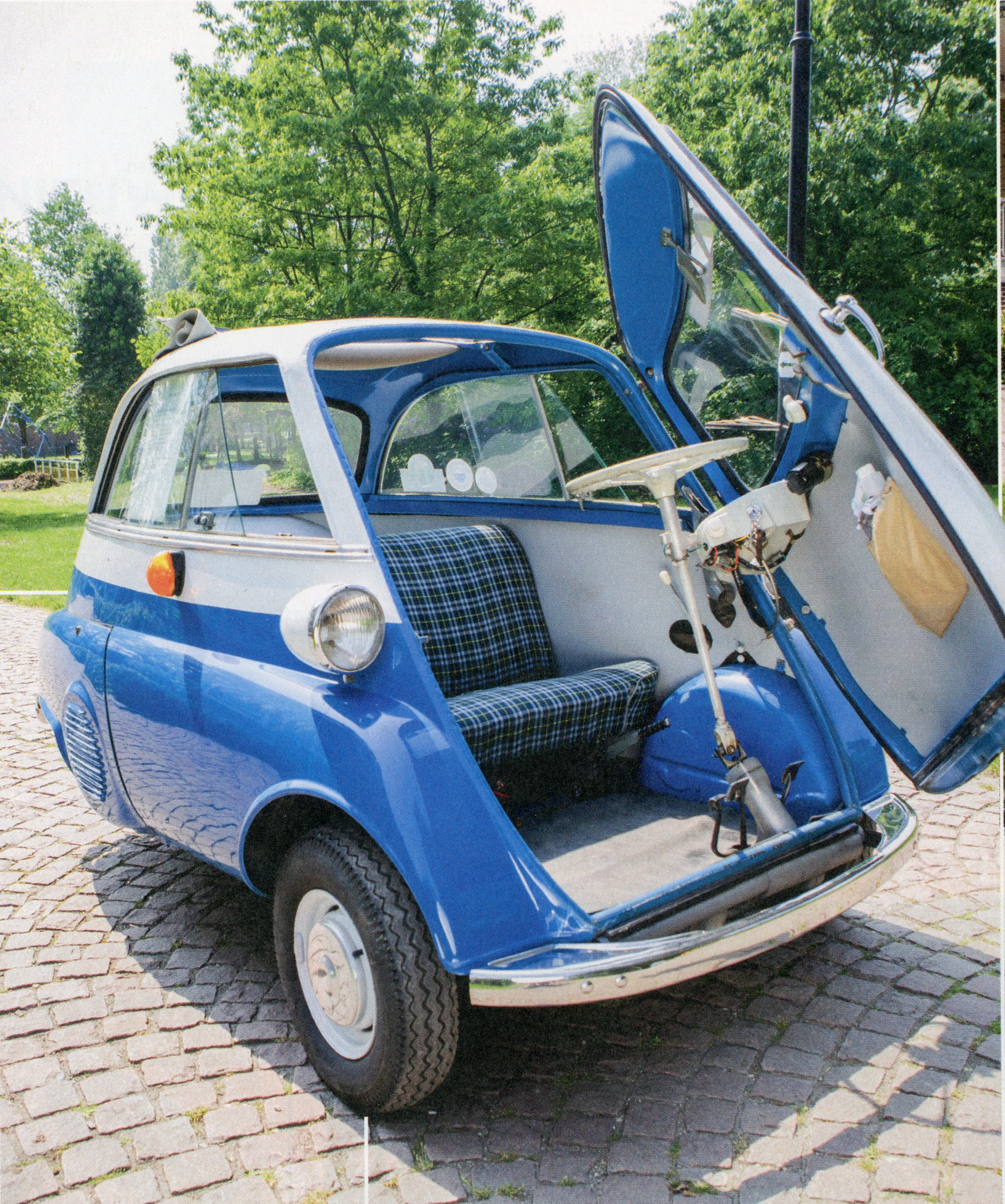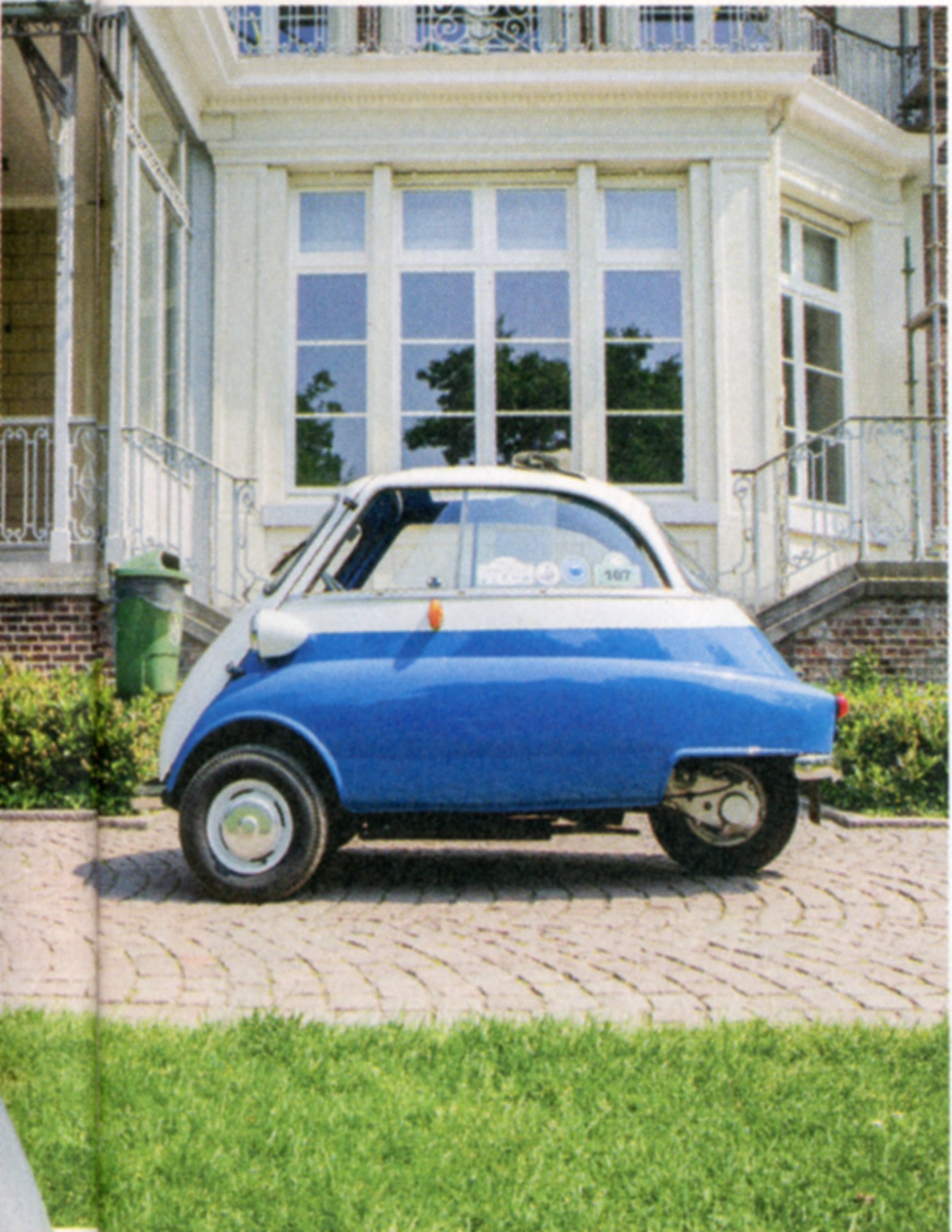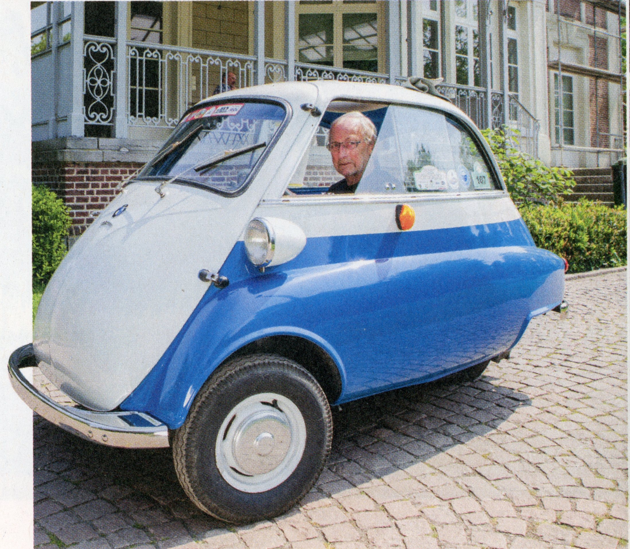 "Oorspronkelijk is de auto van Italiaanse afkomst. Hij werd eerst gebouwd door ISO, een koelkastenfabrikant. BMW heeft het ontwerp overgenomen, omdat het merk op dat moment geen eigen financiële middelen had om een kleine wagen te ontwerpen. BMW stak er een nieuwe motor in, alsook het mechanisme waarbij het stuur mee beweegt wanneer de deur opengaat. Twee grote verbeteringen. Het was meteen een succes. In zekere zin heeft de Isetta BMW gered van het faillissement. Klein detail: hij werd in de reclame aangeprezen als 'comfortabele gezinswagen'. Dat moeten toch heel kleine gezinnen geweest zijn... "