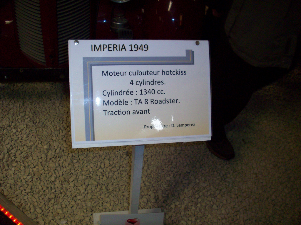 Het museum stelde een dertigtal oude wagens tentoon van verschillende merken. Een van de grootste stands bestond uit verschillende modellen van Imperia en Vanguard, met 12 voertuigen die in Nessonvaux werden gebouwd.