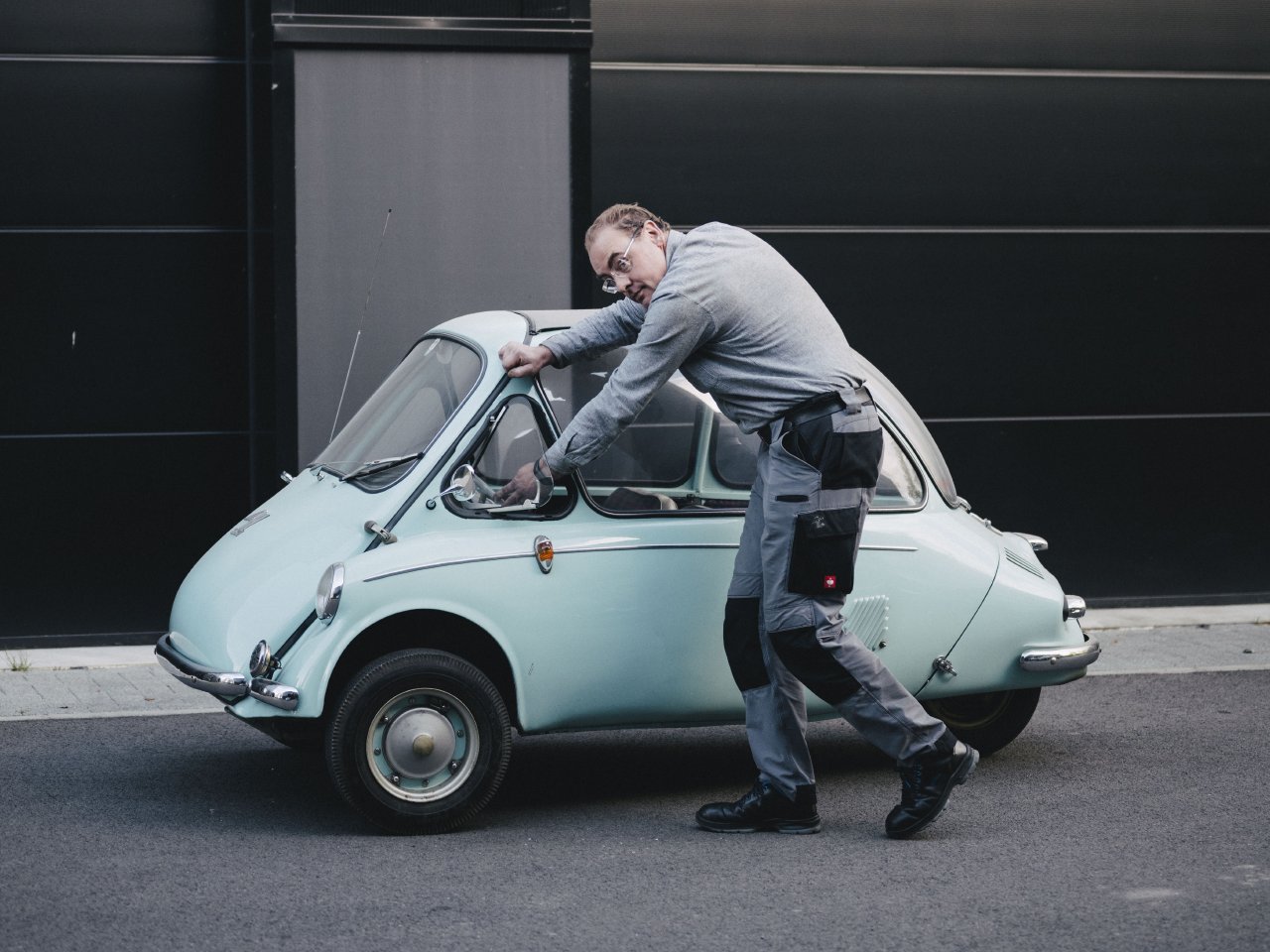 ‘Zo kreeg ik er als kind een van mijn tante nadat hij niet meer door de technische keuring kwam’, vertelt zijn zoon. ‘De auto stond bij ons in de tuin, om in te spelen. Maar finaal moest hij naar het oud ijzer. Die auto was beter dan het exemplaar dat we jaren later kochten om te restaureren. Vaak gaat de liefde voor auto’s gepaard met dergelijke jeugdherinneringen. Je kunt je dus afvragen hoe je iemand van twintig in een Isetta krijgt. Die heeft daar geen herinneringen aan.’